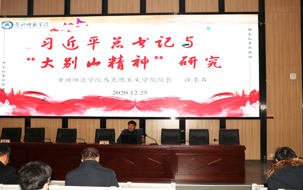 12月25日下午,马克思主义学院在教师发展中心二号报告厅举办了以《习近平总书记与“大别山精神”研究》为题的讲座。学校邀请到黄冈师范学院马克思主义学院院长、湖北省高等学校人文社科重点研究基地大别山红色文化研究中心执行主任、国家哲学社会科学基金评审专家汪季石教授作专题讲座。校党委委员、副校长刘东山,马克思主义学院全体专任教师和部分兼课教师,二十余名辅导员及近100名学生代表参加了本次讲座。