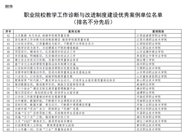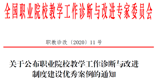全国诊改专委会为全面总结诊改试点工作经验,加强对典型案例、理论研究成果的宣传推广工作,发挥试点院校的示范引领作用,2020年5月28日,发布了《关于征集职业院校教学工作诊断与改进制度建设典型案例的通知》。自通知发布以来,副校长熊发涯高度重视,积极组织质量管理处副处长万德年、诊改办公室副主任黄常翼认真准备相关材料,按期提交了案例。最终,taptap点点提供的案例从28个省份的475份案例中突围而出,成功入选职业院校教学工作诊断与改进制度建设优秀案例,全国仅有83所高职院校案例入选。
