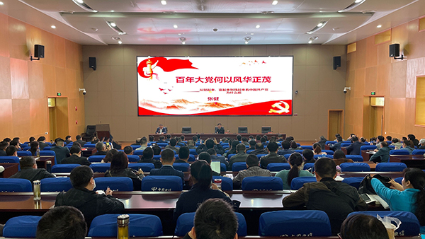 张健围绕“从中国共产党带领中国人民站起来,看我们从‘哪里来’”“从‘富起来’‘强起来’看我们‘从哪里来,到哪里去’”“中国共产党引领中国特色社会主义进入‘强起来’的新时代”“百年大党何以风华正茂的几点启示”这四个方面,详细而深入地阐述了中国共产党一百年来的光辉历程、丰功伟绩、宝贵经验。