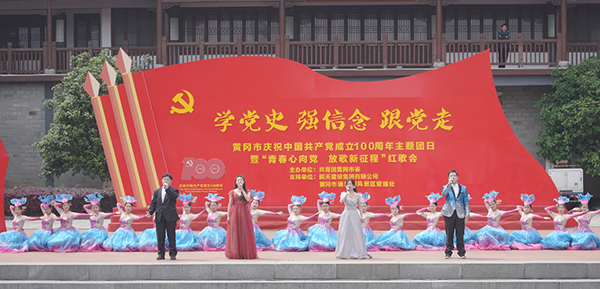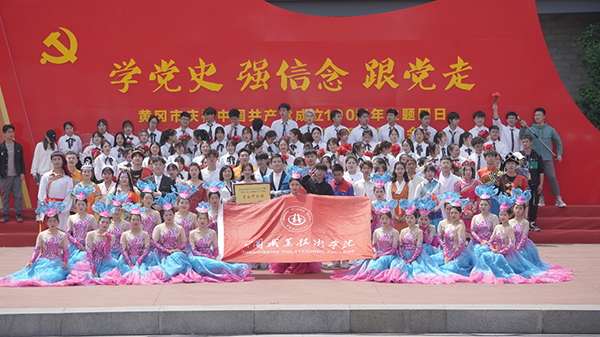 4月28日上午,taptap点点大学生艺术团、青年志愿者同学等100余人,参加了共青团黄冈市委举办的“学党史 强信念 跟党走”庆祝中国共产党成立100周年主题团日暨“青春心向党 放歌新征程”红歌会活动。校党委委员、工会主席、宣传部部长郑柏松出席。