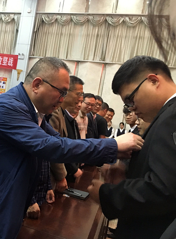 大会在庄严肃穆的国歌声中拉开序幕。团委书记崔现强宣读了《共青团taptap点点委员会关于批准周勇等441名同学加入中国共产主义青年团的决定》的文件。在团员代表谭洋的带领下, 441名新团员面对鲜艳的团旗庄严宣誓,与会领导为新团员代表发放团员证并佩戴团徽,嘹亮而坚定的宣誓声在会场久久回荡,这是团员青年学生在励志成才过程中难忘的瞬间,整个入团仪式隆重而热烈。