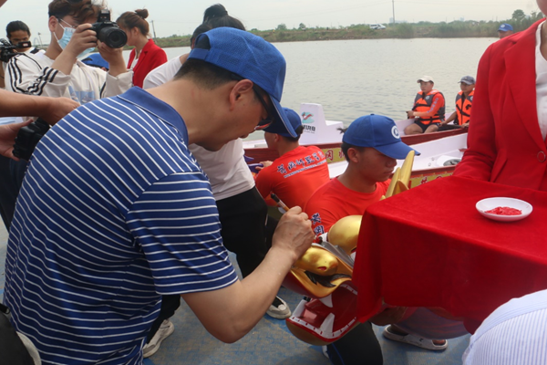 田洪光为龙舟进行“点睛”