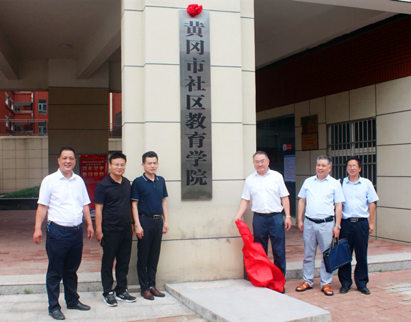 会后,姜安心、刘立志、李全仪、刘明涛、查方能、张正超等领导共同为黄冈市社区教育学院揭牌。