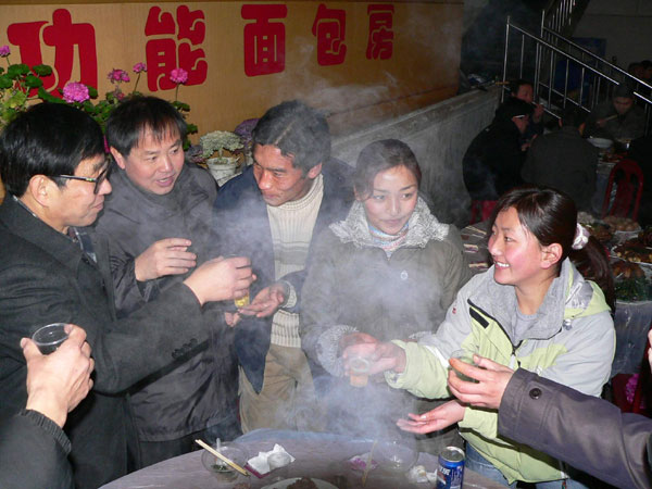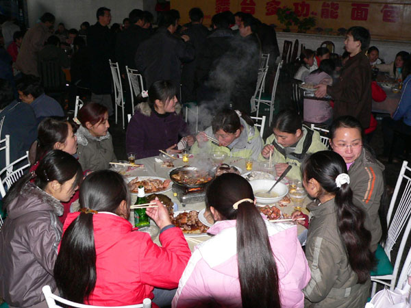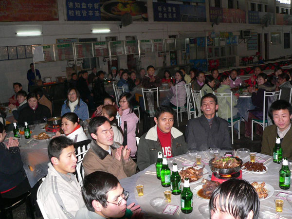 全体留校学生在中区食堂与院领导同吃团圆饭
