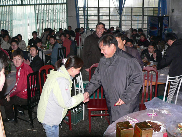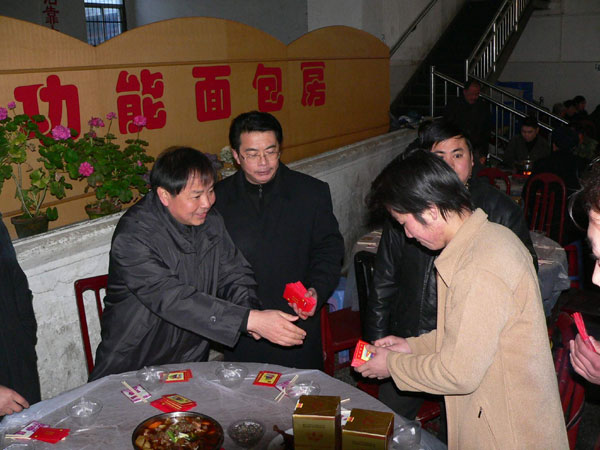 在新春佳节到来之际,学院领导想到的不是远道归来的亲人,不是与家人团聚的欣喜,而是心系因家庭困难而远离家人的一百一十六名留校学生。学院党委书记涂普生、院长周德金、党委委员王维华、副院长段院生一行,冒着春雨,来到学院请留校学生、留守校园的工作人员一同吃年饭,共庆佳节。院领导分别向留校学生问好,祝他们在新的一年里,好好学习,天天向上。