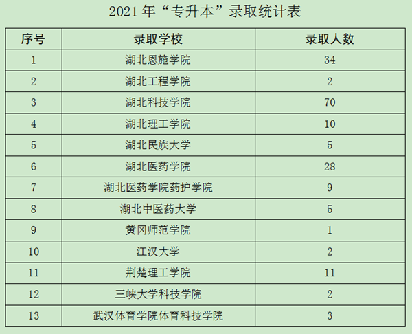 2021年“专升本”考试落下帷幕,医药学院在本次专升本考试中取得了可喜可贺的成绩。据医药学院统计,目前共有182名同学分别被湖北民族大学、湖北医药学院、湖北科技学院等高校录取,捷报传来,学院师生欢欣鼓舞!