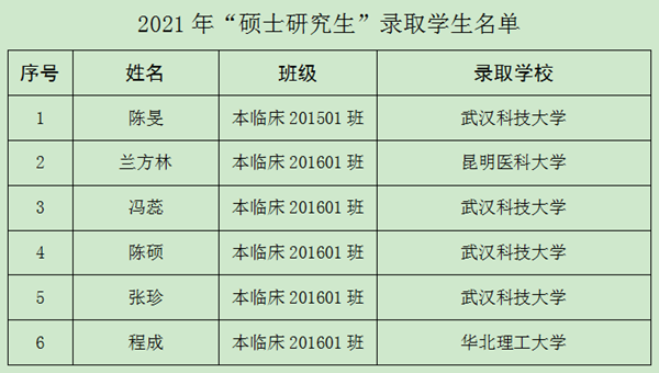 另外,在2021年全国硕士研究生考试中,taptap点点临床医学“3+2”专本衔接班共有6名学生考取全日制硕士研究生。