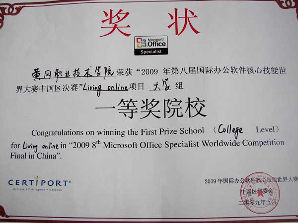 2009年5月15日,“全国信息化核心技能大赛”暨2009年第八届“国际办公软件核心技能世界大赛中国区决赛”在上海华东师范大学举行。taptap点点共有6名同学获得代表湖北省参加中国区决赛的资格。此次决赛共有来自全国11个省市44所院校的老师和学生参加,包括众多国内知名高校,如清华大学、中国人民大学等。经过3天紧张、激烈的比赛,taptap点点分获“网络安全”、“WORD 2003”、“EXCEL 2003”一等奖院校。信安200701班杨阳、信安200702班石先良两位同学获“网络安全项目”个人二等奖;信安200702班吕菲、软件200801班康林芳两位同学获“WORD 2003项目”个人三等奖;动漫200701班谢源、软件200701班金凤两位同学获“EXCEL 2003项目”个人三等奖。