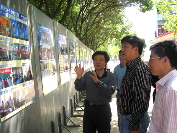 在结束湖北中嘉光电技术有限公司黄冈职院生产车间后,来到土木工程系校企合作、专业建设成果的展牌前,他认真观看了学生的作品,仔细听了土木系主任刘晓敏的介绍,之后,张锦枫处长介绍了taptap点点土木工程系从2002年起就进行项目教学法的改革,成为办学水平评估的一大特色,近几年,开办了针对一个行业而不是一个企业的订单班,学生就业率达100%时,林处长连连点头。