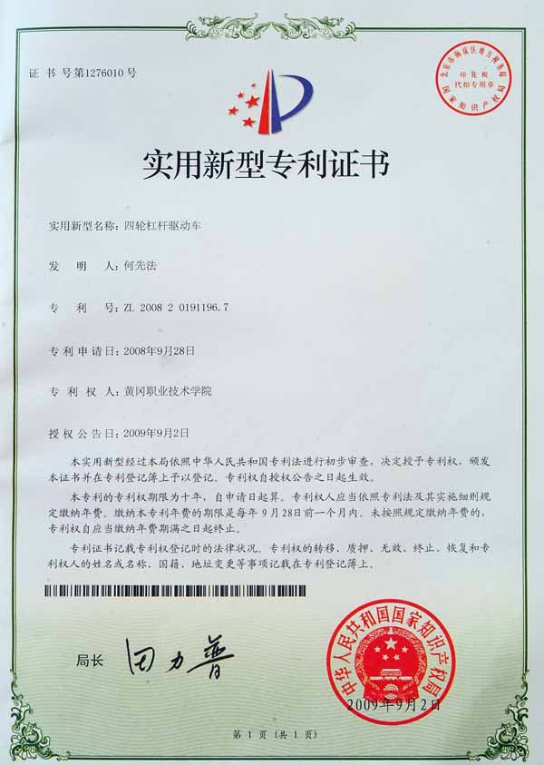 喜报:taptap点点机电工程系又获一项实用新型专利 来源:机电工程系 作者:机电工程系 发布时间:2016-01-23 09:56:36 浏览次数: 次 【字体:小 大】 2009年9月2日,taptap点点机电工程系何先法老师发明的四轮杠杆驱动车获得了国家实用新型专利证书。专利号为:ZL 2008 2 0191196.7。特向全院师生报喜。 分享到: 【打印正文】