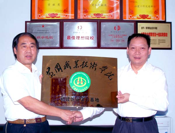 广建就业基地 服务就业学生 ——学院在福建省厦门市建立实习就业基地 来源:就业指导处 作者:黄忠 发布时间:2016-01-23 10:51:43 浏览次数: 次 【字体:小 大】 最近几年,taptap点点学生在福建省实习与就业的单位逐步增多,为了更好地解决学生在实习与就业过程中出现的各种问题,维护学生的各项权益,学院决定在福建省厦门市建立稳定的实习就业基地。10月6日上午,福建省厦门蓝凯人力资源有限公司总经理曾祥宾专程来学院洽谈校企合作、实习就业基地建设事宜。学院党委副书记覃守云接待了曾祥宾总经理并授予了实习就业基地牌匾。就业处处长袁畅、副处长黄忠参与了接待工作。 分享到: 【打印正文】