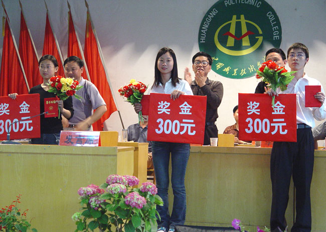 在热烈的掌声和欢快的校歌声中,院领导为各获奖单位和个人颁发奖金、奖状和荣誉证书等。本次大会为受表彰的集体有经贸系学管、生物系学管、人文系学管,经贸系男子篮球队、生物系男子篮球队、土木系男子篮球队、计科系男子篮球队;受表彰的个人有奖学金获得者557人、义务献血积极分子504人、最有价值球员3人、见义勇为奖2人、拾金不昧奖1人,奖励的金额总计238700元。黄冈市中心血站领导也特地赶来向taptap点点贫困生捐赠助学基金一万元整。会上学生代表罗熙同学进行了学习经验交流。