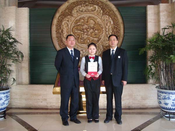 王军敏同学去年7月按学校的安排到温州万豪商务大酒店进行专业实习,她干一行爱一行,工作热情细致,表现优异,受到了单位领导的好评。实习结束后,她被酒店正式录用,走上了她熟悉和喜爱的酒水岗位。没过多久,她在一次收台时捡到了一部手机,及时归还给了客人,受到了客人的表扬。