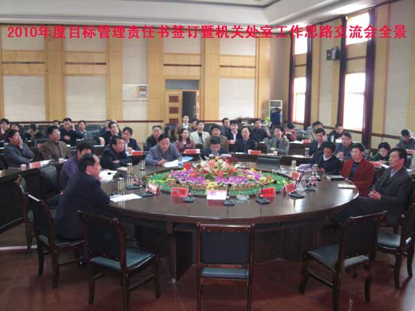 4月6日上午,学院在中心会议室召开了2010年度目标管理责任书签订暨机关处室工作思路交流会。全体院领导、各单位中层干部参加了大会,大会由党委副书记覃守云主持。