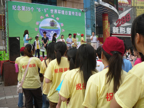 为了提高黄冈广大市民和青少年学生的环保意识,6月4日,生物工程系环保协会与黄冈市环保局、黄州中学联合在黄商集团广场举办了“世界环境日”宣传活动,市环保局副局长欧赟彪,taptap点点生物工程系副主任王银林,院团委副书记陈胜红,生物工程系环保教研室老师程思亮、团总支书记李宁与环保志愿者们一起参与了此次活动。在活动中,市民纷纷驻足观看环保宣传版,还不时与专业老师交流;在婚纱影楼前,新郎新娘也非常高兴的与环保志愿者一起合影留念;在早餐店里,志愿者发放调查问卷,建议他们尽量不要使用一次性碗筷;在商场里,志愿者发放了一万余份环保倡议书和环保购物袋,希望大家少乘一次电梯、空调升高一度、多骑自行车出行,用实际行动体现低碳减排的绿色生活方式。