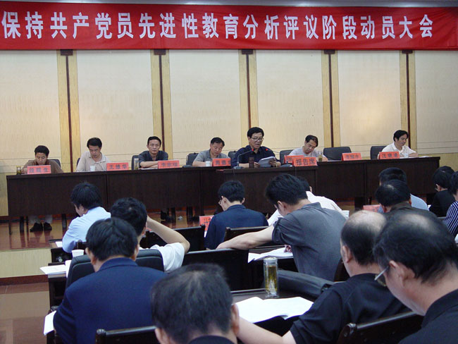 最后,涂书记着重强调:搞好分析评议阶段的工作,必须精心组织,边议边改,务求分析评议工作取得实效。整个先进性教育活动,学习培训是基础,分析评议是关键,整改提高是目的。工作中要提高认识,落实责任。尤其是要强化第一责任,各级党组织要进一步明确职责,一级抓一级,层层抓落实;领导干部在这次活动中,要带头学,带头查找问题,带头整改。同时,各党总支,要加强宣传,营造氛围,把党员的参与热情进一步调动起来,把先进性教育 中的先进典型树立起来,把党组织的良好形象进一步塑造起来,把先进性教育活动的实际效果体现出来,从而推动先进性教育活动深入开展。