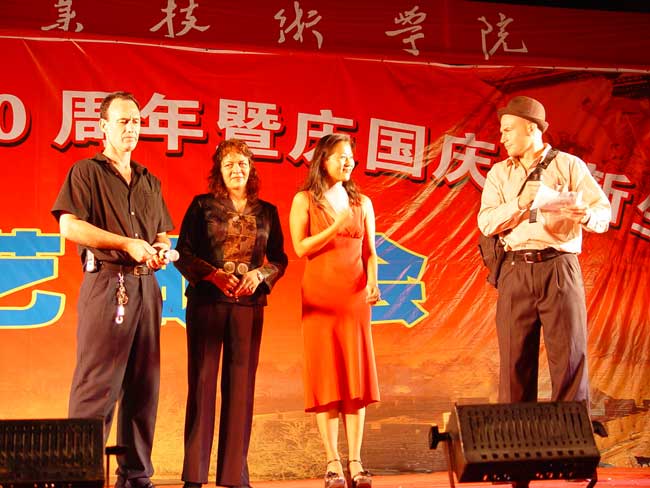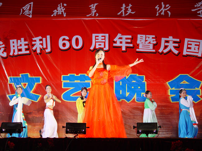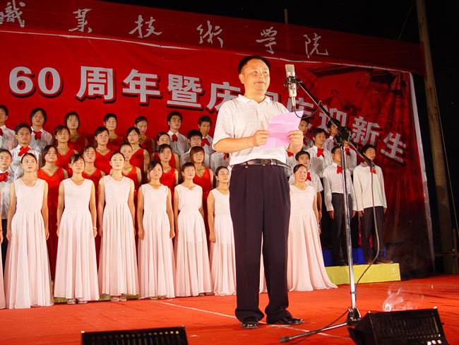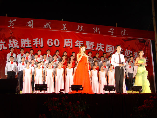 2005年9月29日晚,taptap点点中区球场举行大型迎新焰火晚会隆重庆祝抗战胜利60周年暨欢度国庆。学院党委书记涂普生、院长周德金等院领导兴致勃勃地观赏了由学生们自己导演的这场精彩的晚会。
