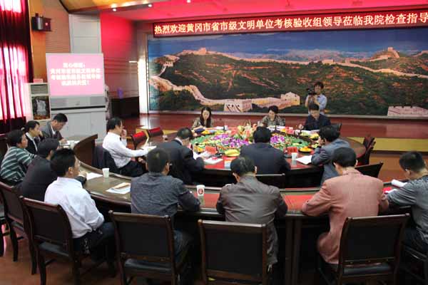 检查组一行首先参观了24号学生公寓、西苑餐厅、汽车实训中心、土木系办公楼、37号学生宿舍、校史馆。在听取汇报时,院长陈年友致了热情洋溢的欢迎词,党委书记张鹤桥作了详细的工作汇报。随后,检查组领导仔细查看了资料。在反馈意见时,胡部长说,黄冈职院的文明创建工作抓得实、做得精,希望继续努力,在全市起到带动作用。