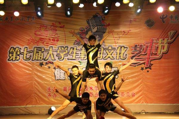比赛中选手身穿五彩缤纷的比赛服,踏着激昂动感的音乐节拍,在比赛舞台上完成了一套套精心构思的动作,为观众带来美的享受。开场富有印度国风的舞蹈,魅感的色彩,给我们带来了一场视觉盛宴;吸收了古筝、武术、搏击等元素的表演则更是展示了动感风情。整齐的动作、敏捷的身法、活力的跳跃、参赛队员们酣畅淋漓地表演,秀活力、展青春、争上游,舞出了一道道绚丽多姿的风景线。黑白配让我们激动不已,We can fly 则让人回味无穷,毛毛虫使人感叹,苏妲己更加精彩,而天枰座和Heaven killer 更是两次引领欢呼的高潮。激情与豪迈辉映,和谐和动感相生,火热的场面吸引观看比赛的所有观众。