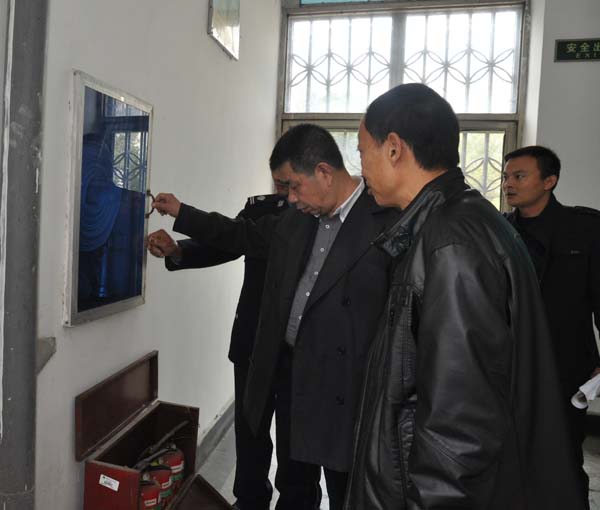 11月29日上午10:00,党委书记张鹤桥带领保卫处处长姚沫喜,学工处处长刘明涛、副处长熊楚舒,后勤服务中心党总支书记周祥焱、主任陈国安、副主任高银桥,教务处童秋艳老师等8人,抽查了学院部分学生宿舍、实验实训中心、配电房、图书馆等重点部位的防火安全情况。