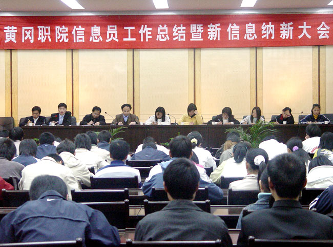 新信息员代表在会上发言,他们将以高度的责任心和认真的工作态度去完成每一项工作,全心全意为老师和同学服务,真正起到教与学的桥梁纽带作用。最后大会在同学们的热烈掌声中圆满结束。