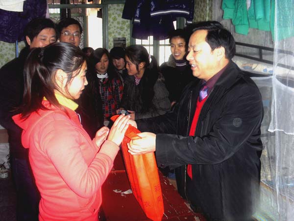 陈院长在南4舍详细询问经济困难学生的生活、学习、家庭状况等问题,提醒在场人员要加强理论学习和实践锻炼。在南4舍211寝室看望经济困难生园林专业的李钰同学时,陈院长握着她的手说,“天冷了,学校给你们送套保暖内衣,希望你们能过一个温暖的冬天!”随后,陈院长和园林班的几个同学就专业问题进行了亲切的交谈,他教导同学们学习要结合实际、用于实践,最后,还给同学们留下了一道寒假作业题:结合所学专业知识对校园内的各景点提出一至两处个人观点。