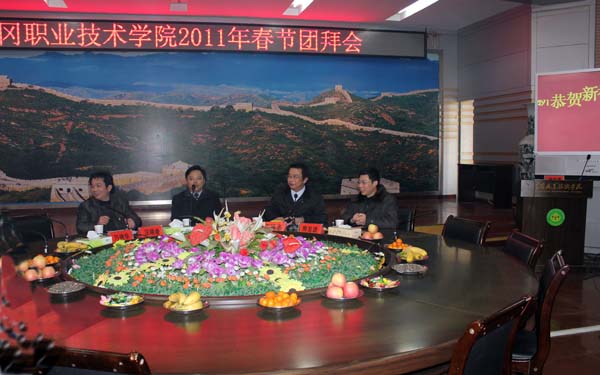 金虎辞旧岁,玉兔迎新春。2011年2月3日(兔年正月初一),阳光明媚,春意融融。上午10时,taptap点点2011年春节团拜会在学校中心会议室隆重举行。在家的校领导陈年友、王维华、汪晓凌、熊发涯出席了团拜会,在家的中层干部、留守学校的值班人员和学生参加了团拜会。党委书记张鹤桥及其他校领导通过电话委托院长陈年友向全校教职工拜年。团拜会由党委委员、工会主席王维华主持。院长陈年友致新春贺词,他首先向参加团拜会的教职工拜年并通过与会人员向全校教职工及家人拜年,重点回顾了硕果累累的2010年,展望了美好的2011年。教师代表和学生代表讲了话。师生欢聚一堂共祝祖国的明天更美好,学校的明天更美好。团拜会上,留守学校的学生表演了文艺节目。团拜会在欢歌笑语中结束。