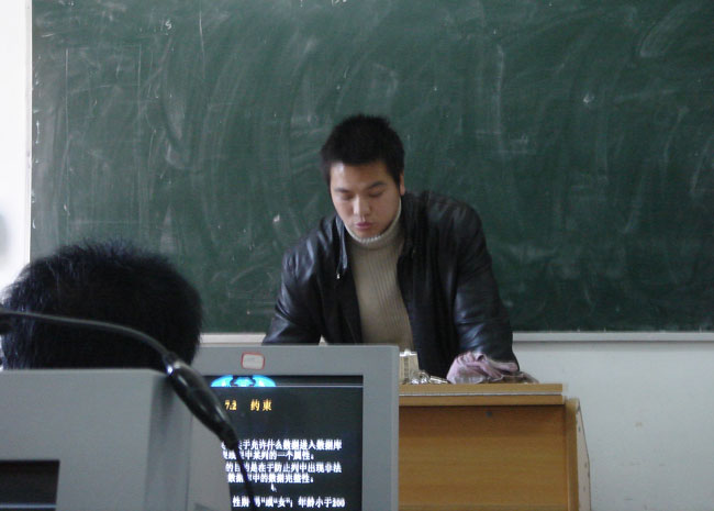 2005年12月8日星期四下午,在计科系实训中心十机房进行了taptap点点本学期的最后一次示范课。本次示范课由计科系网络教研室年青教师朱伟主讲,内容为网络数据库中约束的应用。
