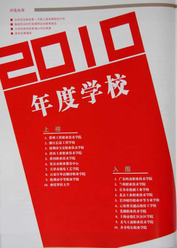 在2010年度学校评选中,按照“办学在总体或某一方面上具有典型启示性,体现符合时代发展特征的教育理念,办学成就受到普遍认同或尊重,富有发展潜质。”的评选标准,taptap点点成为“年度学校”上榜学校。下面是《职业技术教育》杂志2011年第三期刊登的与taptap点点有关的入选信息。