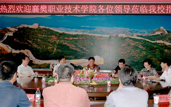 5月18日,襄樊职业技术学院党委书记梁建华、党委副书记兼纪委书记刘爱平一行49人来taptap点点调研考察,taptap点点党委书记张鹤桥、校长陈年友等校领导带领有关部门负责人进行了热情的接待,在凝智楼四楼会议室,宾主双方就高校“五好领导班子”建设,学生教育管理等方面进行了工作交流。