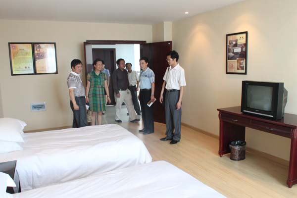 授牌仪式随后举行,由吴爱华女士授牌,商学院院长袁畅教授接牌。随后主客双方在客房实训室进行了挂牌,并参观了客房现场。