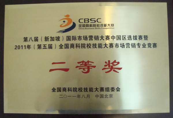 2011年7月30日至8月1日,在教育部、商务部、国家经贸委的指导下,由中国商业联合会、(英国)特许市场营销学会新加坡区域总部(The Chartered Institute of Marketing Singapore)、中国中小商业企业协会、中国纺织品商业协会、中国国际贸易促进委员会商业行会分会和教育部高等学校高职高专旅游管理类专业教学指导委员会联合举办的第八届(新加坡)国际市场营销大赛中国区选拔赛暨2011年(第五届)全国商科院校技能大赛市场营销专业竞赛全国总决赛在对外经济贸易大学隆重举行。