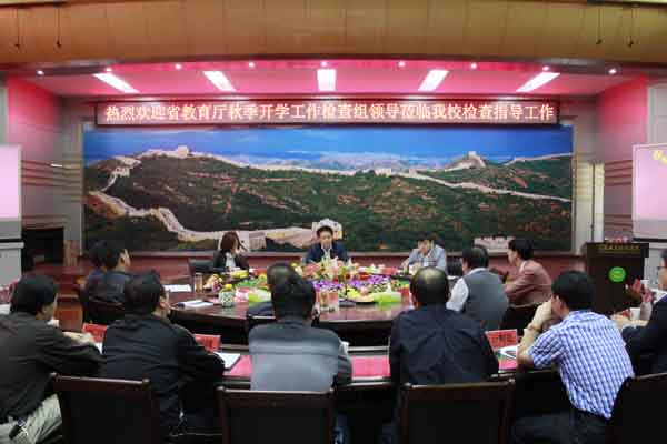 张鹤桥同志代表学校党委、行政对检查组一行表示热烈欢迎。王维华同志向省教育厅检查组从七个方面详细汇报了taptap点点开学初的工作情况。一是加强领导,全面部署迎新迎检工作;二是精心组织,迎新工作有条不紊;三是充分准备,教学工作顺利开展;四是加强管理,后勤服务保障有力;五是强化安全,构建平安和谐环境;六是执行政策,严格规范办学行为;七是学校发展中存在的问题及建议。