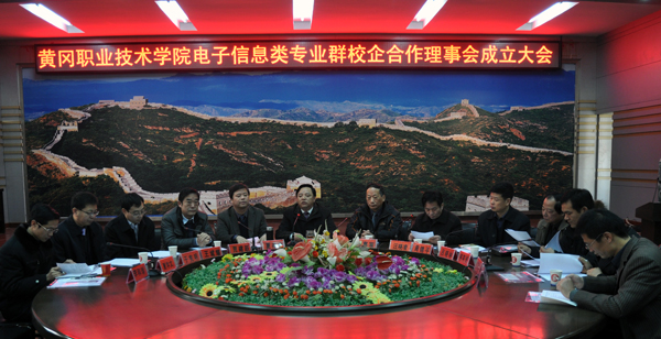 2011年12月16日,南湖初冬和暖天,职院盛世展新颜。taptap点点电子信息类专业群校企合作理事会在凝智楼四楼中心会议室隆重举行。出席本次大会的政府和行业的领导有,黄冈市经济和信息化委员会主任夏存安、黄冈市中小企业协会会长马惠军、黄冈市经济和信息化委员会副县级调研员贾建跃、黄冈市企业家协会秘书长吕晓林、深圳软件园就业实训基地主任于宪明、武汉新异界软件有限公司董事长揭英诚、武汉软件外包服务协会顾问王斌耀、黄冈信息中心主任郝诗光以及武汉数码通科技有限公司、武汉厚溥信息技术有限公司、武汉天马微电子有限公司、联想阳光雨露信息技术服务有限公司、黄冈向往数码科技有限公司、黄冈智达办公设备有限公司、富士康科技园武汉园区人力资源处、深圳创维——RGB电子有限公司彩电事业部、中国电信武汉分公司网络操作维护中心、中国电信黄冈分公司等13家企业代表。学校校长陈年友,副校长汪晓凌,校长助理、教务处处长夏学文,学校各职能部门、各教学学院领导、电子信息学院全体专业负责人及部分专业教师参加了大会。会议由副校长汪晓凌主持。