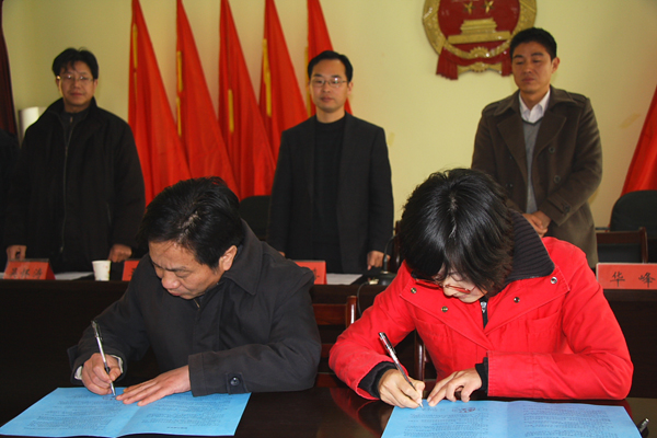 仪式上,首先播放taptap点点宣传光盘,让青石镇领导及各村村长了解黄冈职院的发展和取得的辉煌成就。宣传片播放后由青石镇党委书记发表了热情洋溢的讲话,他着重介绍了青石镇基本情况,青石镇的总体发展思路,青石镇的区位优势、矿业资源、旅游资源、农畜业资源和投资环境,高度评价了学校的办学成果,并号召全镇各村确保校镇村共建项目顺利实施。副校长汪晓凌在讲话中介绍了学校的基本情况和办学成果,高度肯定了青石镇经济社会发展取得的成就,强调了校镇村共建的意义,并对下一步的深度合作寄予了深切的希望。随后,汪晓凌与杨海燕在校镇共建协议书上签字,汪晓凌与二十个村的村支部书记在校村共建协议书上签字。