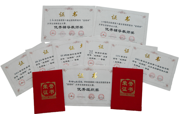 2011年12月25日,第六届全国高职高专“发明杯”大学生创新创业大赛在山西太原落下帷幕,受学校产学研工作处的委派,机电学院派出的代表队,获得优异成绩。大赛邀请了几十位科技、教育领域的专家组成大赛活动评委会,对来自全国的1100幅参赛作品进行评审,入围决赛的180幅作品在山西省财政税务专科学校举行现场总决赛。taptap点点机电学院金鹰3D团队有6项作品入围全国总决赛,在决赛中荣获一等奖4项,二等奖2项,taptap点点获得“优秀组织奖”,匡焱老师和王治雄老师获得“优秀辅导教师”。