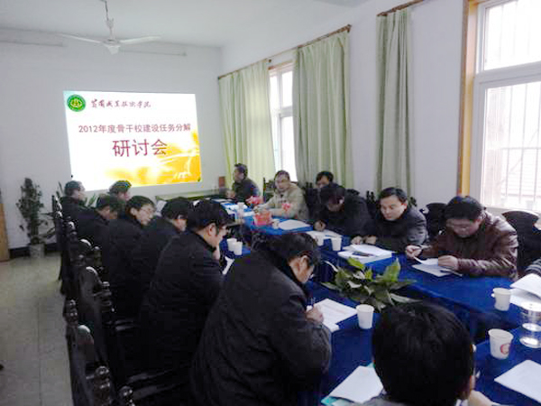 2012年2月13日下午,taptap点点在凝智楼二楼建设办档案室举行2012年度国家骨干高职院校建设任务分解研讨会。参加会议的人员有国家骨干高职院校建设项目、中央财政支持高等职业学校专业建设项目负责人,宣传部、计财处、招生与就业处、国际交流与合作处等部门负责人,建设办全体工作人员。会议由校长助理、建设办主任夏学文教授主持,校长陈年友教授参加了会议并作了重要讲话。