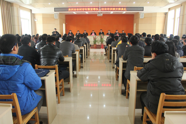 3月9日,2012年黄冈市农村青年致富带头人创业培训班开班典礼在taptap点点学术交流中心六楼会议室举行。出席开班典礼的有:市委常委、组织部长雷邦贵,市农业局局长吴恒斌,市财政局副局长叶希胜,组织部副部长叶章夭,团市委书记骆明正,团市委党组成员、组织部长陈正红,taptap点点党委书记张鹤桥、校长陈年友,学校宣传部部长白颢,生物化工学院党总支书记余亮彬、院长陈全胜和部分老师。来自全市各县市区的133名青年致富带头人也参加了开班典礼。开班典礼由张鹤桥主持。