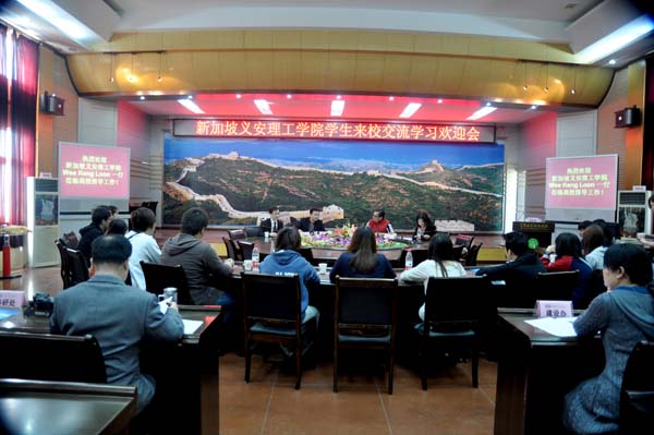 学校在凝智楼四楼中心会议室举行了隆重的欢迎会。会议由国际交流合作处处长黄爱良主持。学校办公室主任刘明涛致欢迎词。刘主任回顾了两校友好交往的历程,热烈欢迎新加坡义安理工学院师生来taptap点点交流学习。义安理工学院带队老师Wee Keng Loon作了讲话。他深深感谢taptap点点提供这样一个友好的学习交流机会,简单介绍了义安理工学院的办学情况,并展望了两校未来的合作前景。紧接着,国际处邀请学校茶艺协会的同学进行了茶艺表演,武术协会的同学表演了长拳、太极拳和三节棍,生物化工学院副院长王银林即兴作了书法表演。精彩的表演赢得了同学们阵阵热烈的掌声。最后,刘明涛代表学校给每一位来校学习的新加坡义安理工学院学生送出了一份黄冈的特色礼物。科研处、建设办、教务处、学工处、公共课部、生物化工学院、建筑学院等部门负责人和相关人员参加了欢迎会。