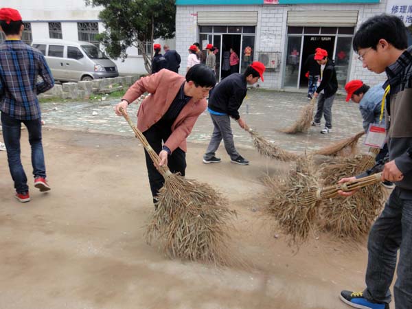 青年志愿者们头戴小红帽,手持铁锹、扫把,齐聚桃园街,形成了一道亮丽的风景线,展现了taptap点点大学生风采。