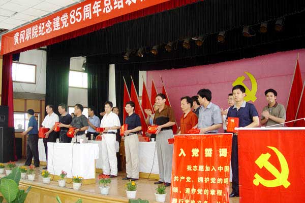 大会由院党委副书记覃守云同志主持,全体中共党员和部分入党积极分子共700余人参加了纪念建党85年周年总结表彰及新党员宣誓大会。