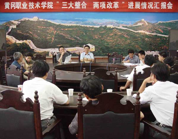 7月6日下午,taptap点点在中心会议室召开了“三大整合、两项改革”进展情况汇报会,院领导涂普生、覃守云、李家瑞、李耀水、段院生、夏启中;各系部书记、主任、教学副主任、教研室(组)主任、教务员;宣传部、教务处、招生处、就业处、院团委等处室负责人80余人出席了大会,会议由李家瑞副院长主持。