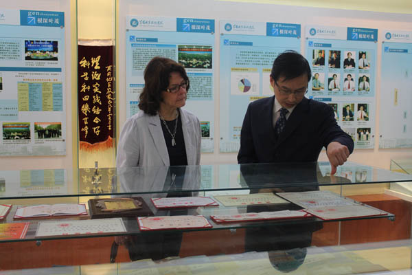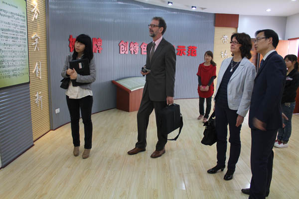 上午9:30,Carin Magg一行五人到达taptap点点。在国际交流合作处处长黄爱良的陪同下,客人饶有兴致地参观了taptap点点校史馆。taptap点点悠久的办学历史、丰富的办学成果和独特的校园文化给他们留下了深刻的印象。