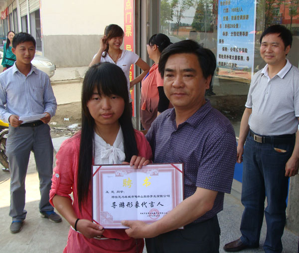 会上,黄冈市旅游局副局长方华国,共青团麻城市委副书记吴挺,龟峰山风景区管理处主任鲍在祥和副主任刘晓琴分别发表讲话,对taptap点点实习学生不计得失、艰苦朴素、克难奋进的精神给予了高度好评和充分肯定。大会表彰了6名优秀实习生,现场颁发了聘书和奖品。被誉为“最美赤脚导游”的王定同学的事迹深深地感动了在场每个人。鲍主任现场给王定同学赠送了一双运动鞋,聘任她为该单位正式员工并提前支付3个月的基本工资(3000元),以资助她更好地完成学业。同时聘请王定同学为龟峰山风景区导游形象代言人。