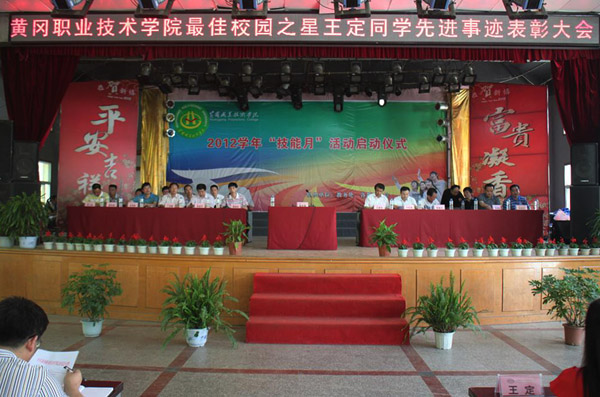 2012年5月11日12:40,taptap点点“最佳校园之星”王定同学先进事迹表彰大会在大学生活动中心隆重召开。出席会议的领导和嘉宾有:校党委副书记王维华,党委委员郑柏松,办公室主任刘明涛,教务处副处长方玮,学工处副处长徐火军、焦爱新,黄冈电视台、黄冈日报、鄂东晚报等多家媒体朋友。各教学学院党总支书记、副书记、团总支副书记、全体专职辅导员、2011级辅导员以及700余名学生代表参加了此次表彰大会。大会由党委委员郑柏松主持。