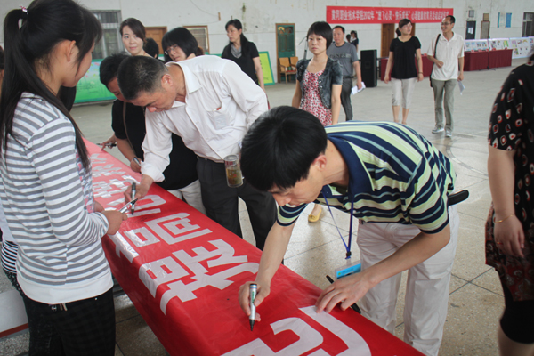 大学生心理健康协会闫菲同学代表全校学生宣读了倡议书,同时还组织了师生进行现场签名活动。启动仪式后,领导老师和同学们一起阅读了心理健康教育知识宣传展板。