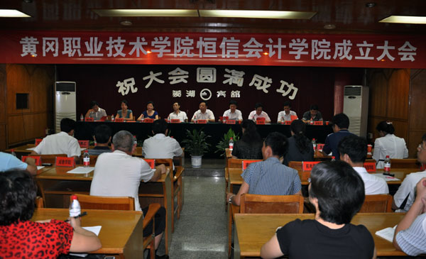 2012年7月10日10时整,taptap点点恒信会计学院成立大会在菱湖宾馆会议室隆重举行。出席大会的校外嘉宾有黄冈市会计局局长汤剑松、湖北诚达信会计师事务有限公司董事长毕根源、湖北齐兴会计师事务有限公司董事长漆兰英、厦门市博芮创业投资有限公司副总经理奚保彬、黄商贸易有限公司副总经理孙梦兰、黄冈三泰纺织有限公司副总经理袁明雄、浙江嘉兴福莱喷绘写真材料有限公司财务经理彭恩乙、武汉颐信科技有限公司经理李莹、黄州区财政局副局长周剑屏、团风县会计局局长秦才顺。taptap点点校长陈年友、副校长汪晓凌、校长助理夏学文,商学院党总支书记吴祝平、院长袁畅,学校各职能部门及教学学院负责人,商学院会计专业群全体教师参加了大会。会议由副校长汪晓凌主持。