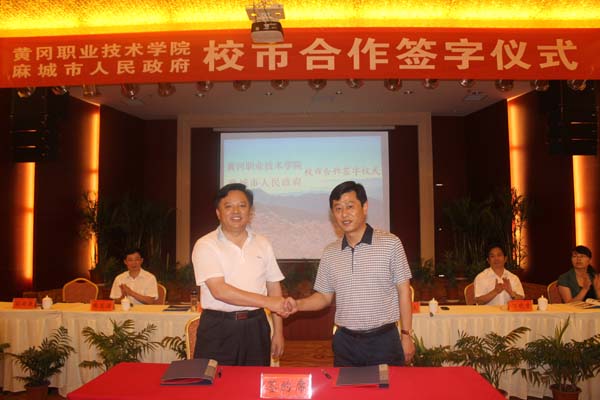 校长陈年友与麻城市市长蔡绪安代表双方签字