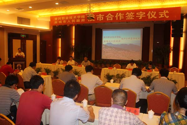 仪式上,陈年友发表了热情洋溢的讲话,他首先介绍了学校的基本情况和办学成果,高度肯定了麻城市经济社会发展取得的成就,梳理回顾了学校和麻城市进行的前期合作,并对下一步的深度合作给予了深切的希望。蔡绪安在致辞中介绍了麻城市的“四大名片” 、“五朵金花” 、“五大产业” 及经济社会发展取得的成绩,高度评价了学校的办学成果,充分肯定了学校在大别山地区经济社会发展中所做的贡献,并号召全市各部门确保合作项目的顺利实施。随后,陈年友与蔡绪安在校市合作协议书上签字。签字结束后,大家鼓掌祝贺。整个仪式在隆重热烈的氛围中进行。