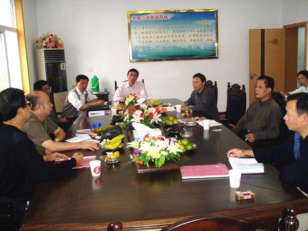2006年10月17日下午,省教育厅领导王东等一行三人来taptap点点检查学生生活后勤管理工作。院党委书记涂普生同志,副院长李耀水同志,及后勤处和后勤集团的主要负责人参加了检查汇报会议。